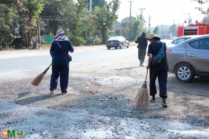 เทศบาลเมืองแม่โจ้ ร่วมลงพื้นที่ทำความสะอาด เตรียมความพร้อมกิจกรรมปฏิบัติธรรม วัดแม่แก้ดน้อย