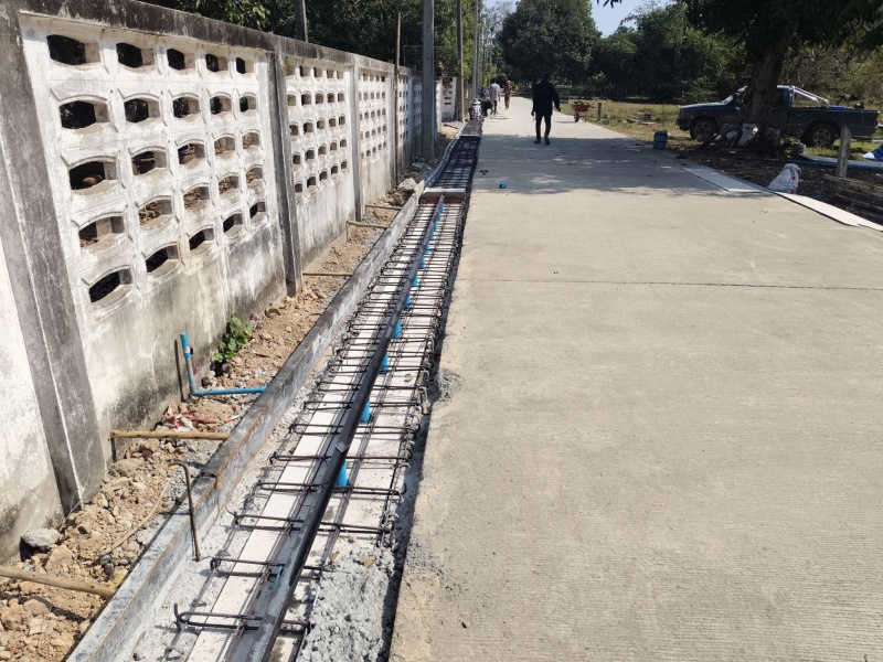 - ขุดดินและผูกเหล็ก งานถนนพร้อมรางระบายน้ำ บริเวณซอยป้าขันแก้ว ป่าขาม