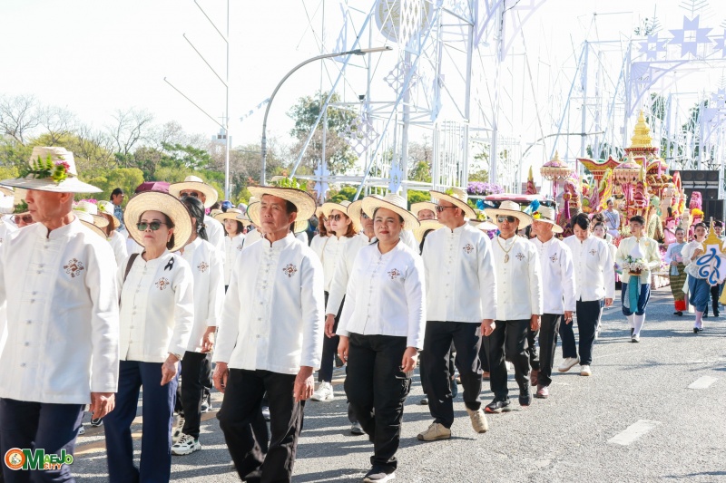 นางทัศนีย์ ทิพนี นายกเทศมนตรีเมืองแม่โจ้ พร้อมด้วยคณะผู้บริหาร และสมาชิกสภาเทศบาลเมืองแม่โจ้ เข้าร่วมเดินขบวนรถบุปผชาติในนามอำเภอสันทราย ภายในงานมหกรรมไม้ดอกไม้ประดับ จังหวัดเชียงใหม่ ครั้งที่ 49 ประจำปี 2569 ซึ่งจัดขึ้นอย่างยิ่งใหญ่ ณ บริเวณเชิงสะพานนวรัฐ จังหวัดเชียงใหม่