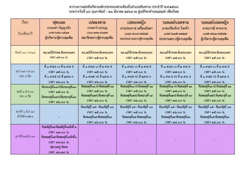 กีฬาประชาชนท้องถิ่น อำเภอสันทราย ประจำปี 2569