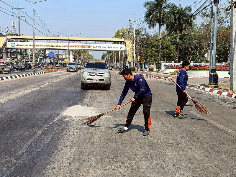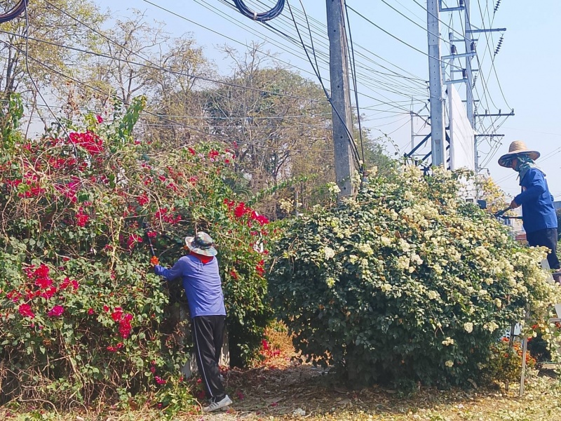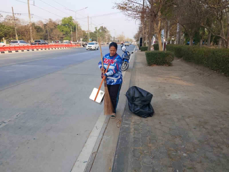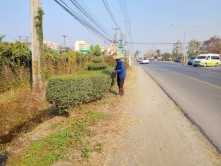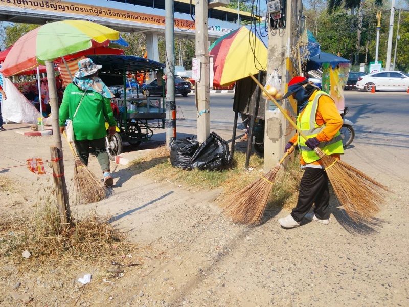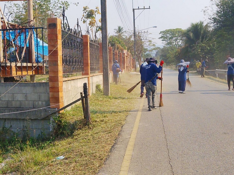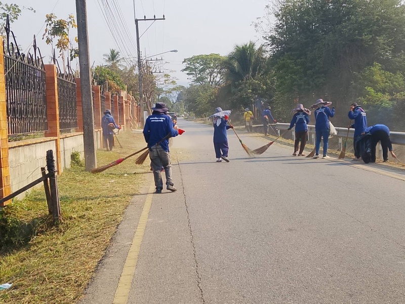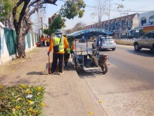 ตัดหญ้าและเก็บขยะสองข้างทาง บนถนนสายหลัก ได้แก่
