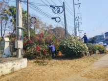 - เก็บกวาดเศษดินและหิน บริเวณหน้าทางออก มหาวิทยาลัยแม่โจ้