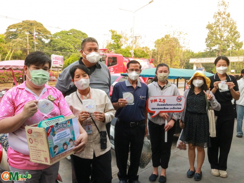 เทศบาลเมืองแม่โจ้ รณรงค์แจกหน้ากากอนามัย ป้องกันฝุ่น PM 2.5 ดูแลสุขภาพประชาชน