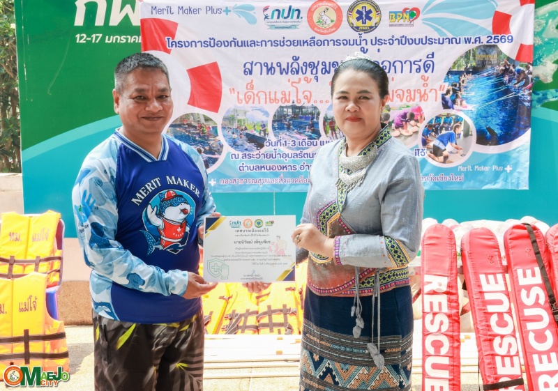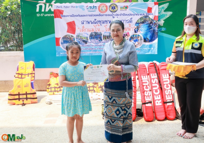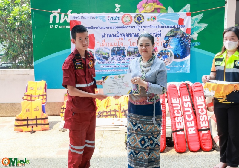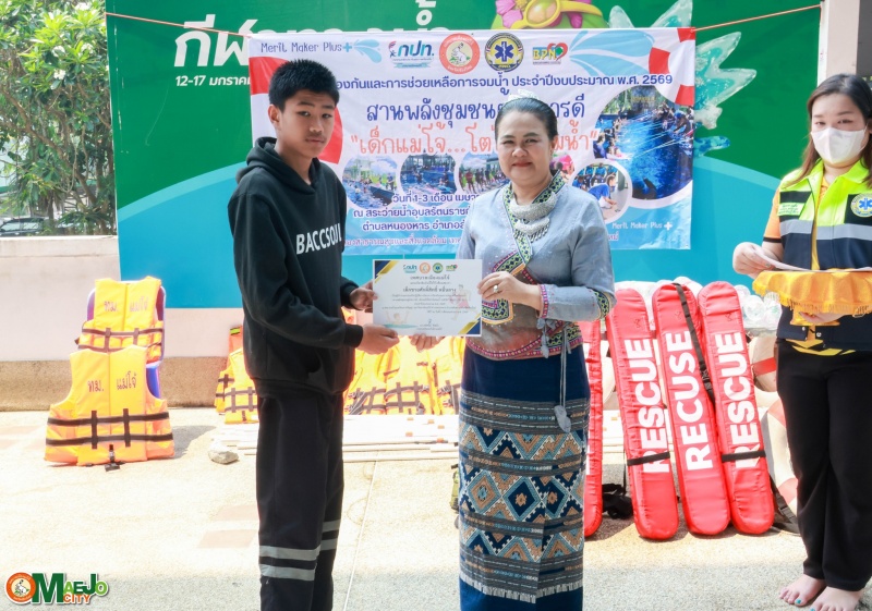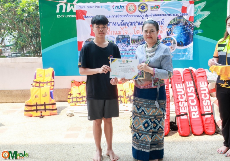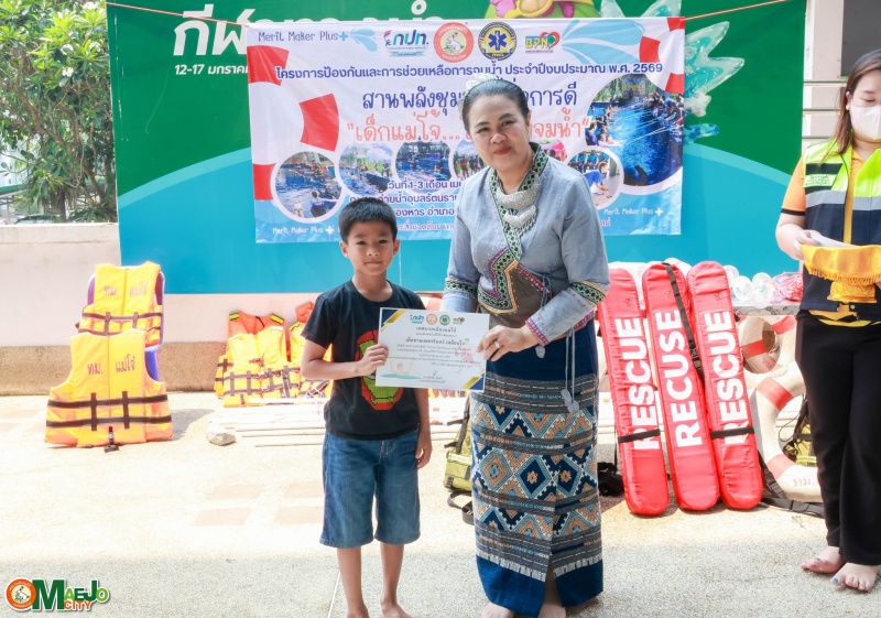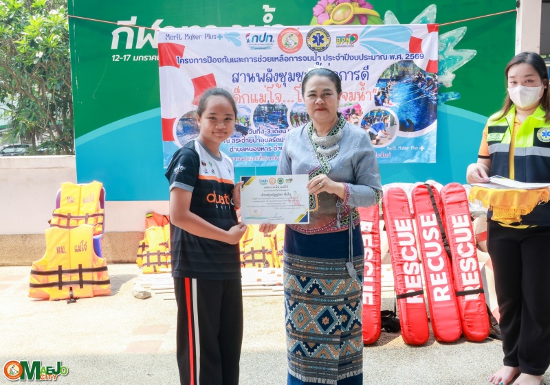 เทศบาลเมืองแม่โจ้ จัดพิธีปิดโครงการ "สานพลังชุมชนผู้ก่อการดี...เด็กแม่โจ้โตไปไม่จมน้ำ" พร้อมมอบใบประกาศนียบัตรแก่ผู้ผ่านการอบรม