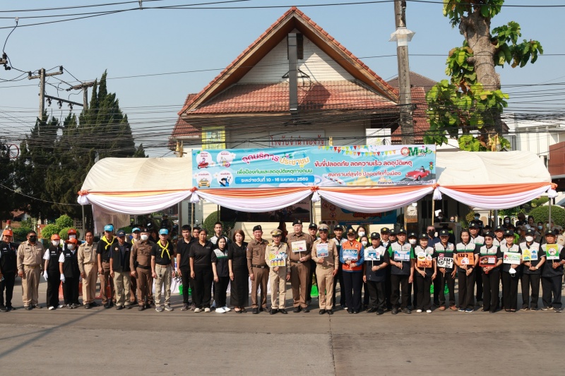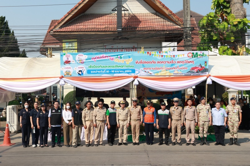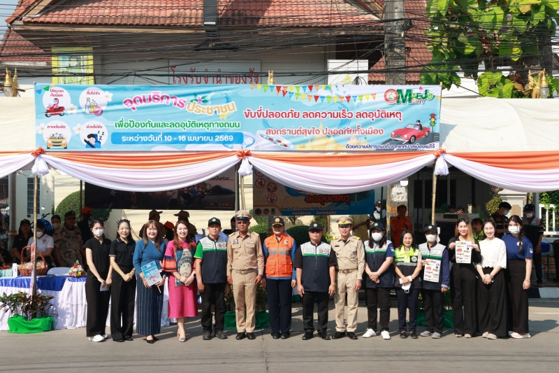 นายอำเภอสันทราย เปิดจุดบูรณาการบริการประชาชน ช่วงเทศกาลสงกรานต์ 2569 มุ่งลดอุบัติเหตุทางถนน หน้าสำนักงานเทศบาลเมืองแม่โจ้