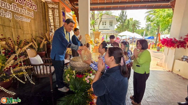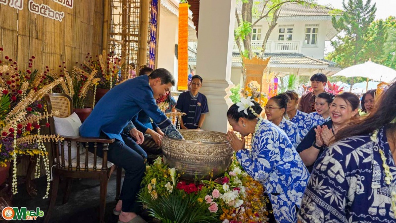 เทศบาลเมืองแม่โจ้ ร่วมรดน้ำดำหัวผู้ว่าราชการจังหวัดเชียงใหม่ สืบสานประเพณีปีใหม่เมือง