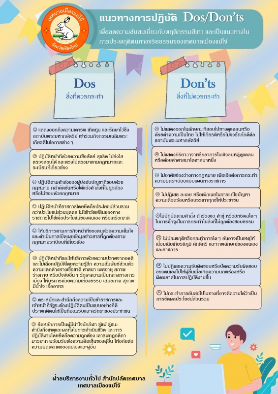 เทศบาลเมืองแม่โจ้ ได้รณรงค์เผยแพร่ แนวปฏิบัติ Do&Don't