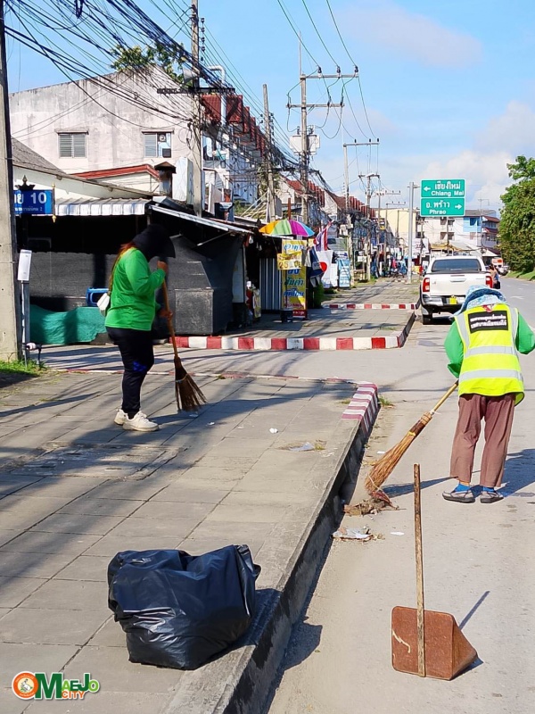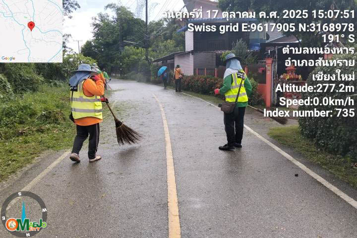 - กวาดถนนสายหลัก เก็บขยะ และตัดต้นชา (ถนนเชียงใหม่-พร้าว / สันทรายสายเก่า)