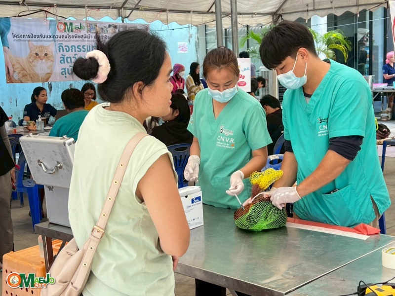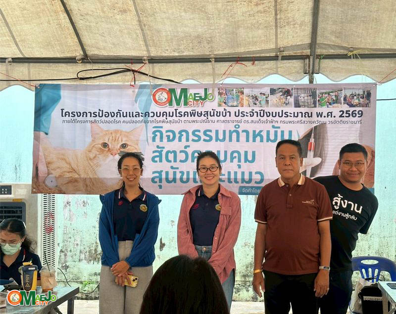 ได้มอบหมายให้เจ้าหน้าที่กองสาธารณสุขและสิ่งแวดล้อม เทศบาลเมืองแม่โจ้ ร่วมกับ มูลนิธิ Hand to Paw เชียงใหม่ เพื่อสุนัขและแมว