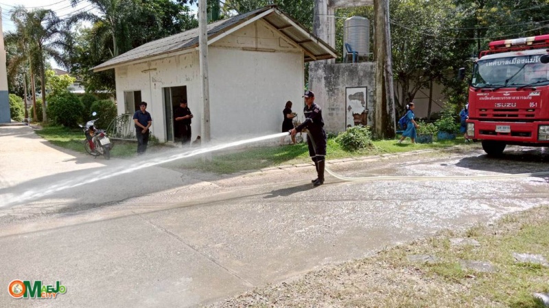 - ล้างเศษดินโคลนถนนบริเวณโรงเรียนสันทรายวิทยาคม
