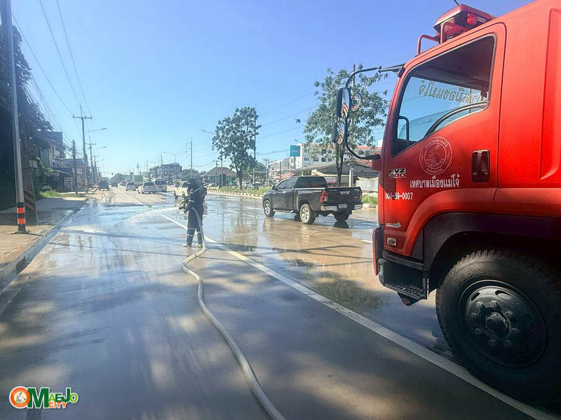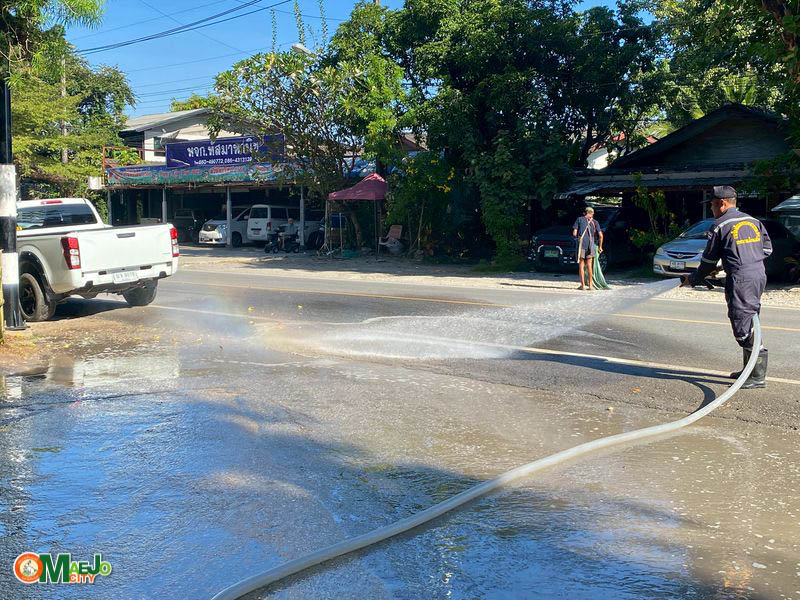 - ล้างถนนรับเสด็จ ตั้งแต่ร้านแม่โจ้แบตเตอรี่ ถึง แม่โจ้ ดีเค เมทัลชีท