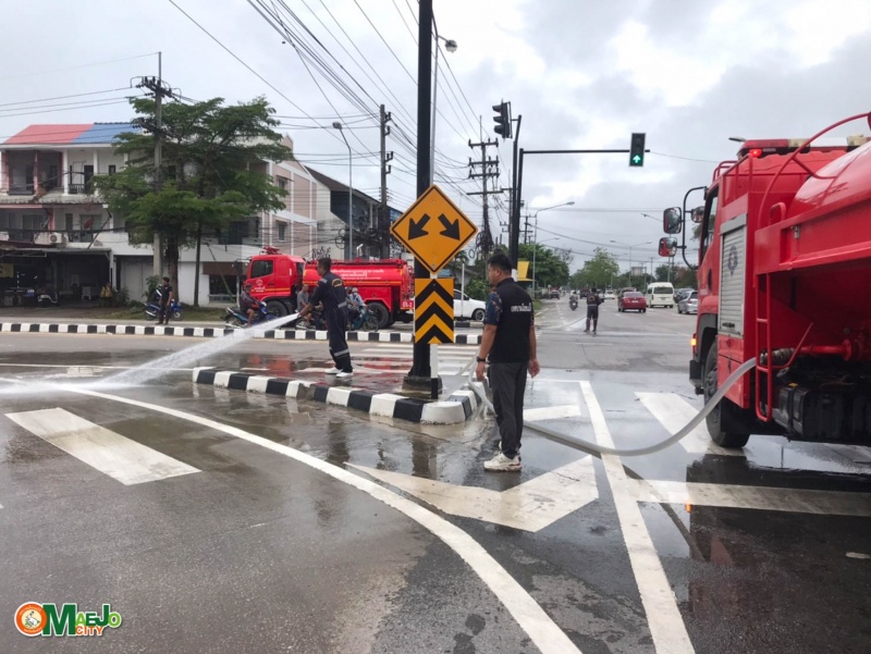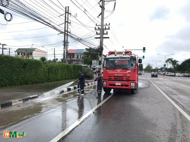 - ล้างถนนบริเวณหน้าโรงพยาบาลสันทราย แยกบ้านไร่ และข้างโรงพยาบาลสันทรายทั้ง 2 ฝั่ง