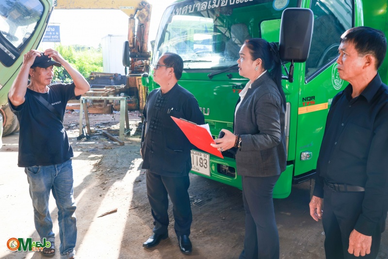 นอกจากนี้ คณะผู้บริหารยังได้ติดตามงานซ่อมบำรุงรถบรรทุกของเทศบาล