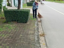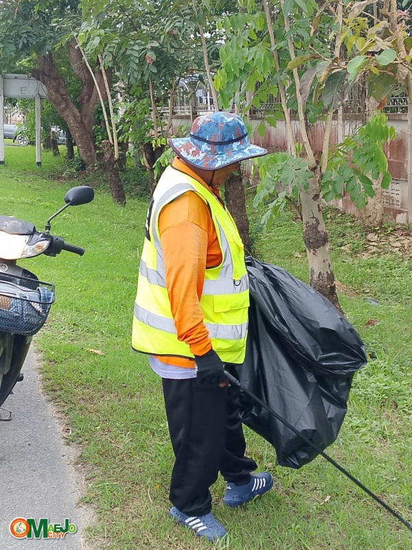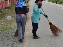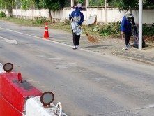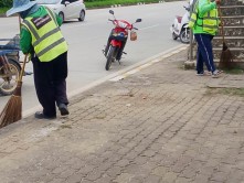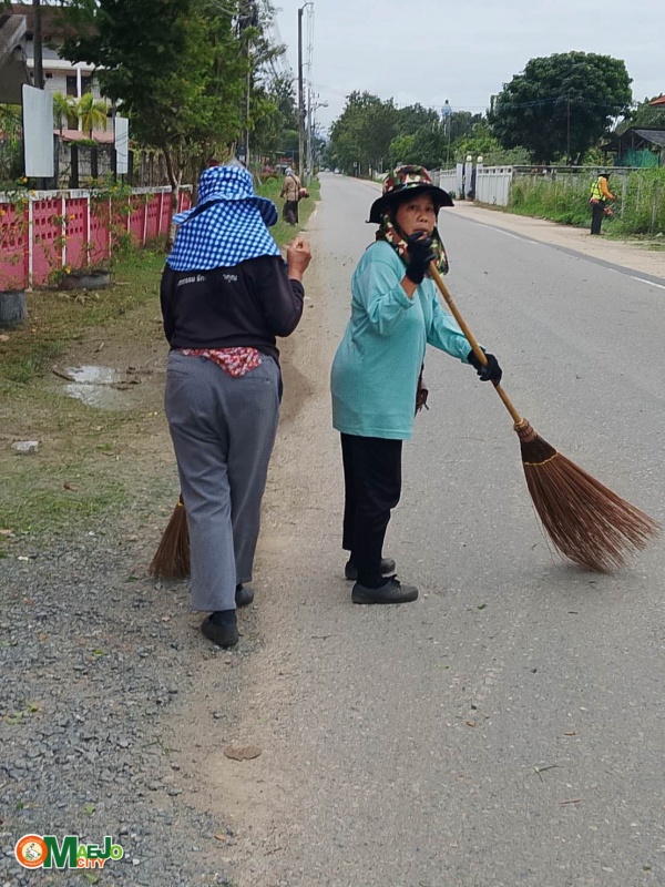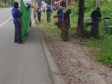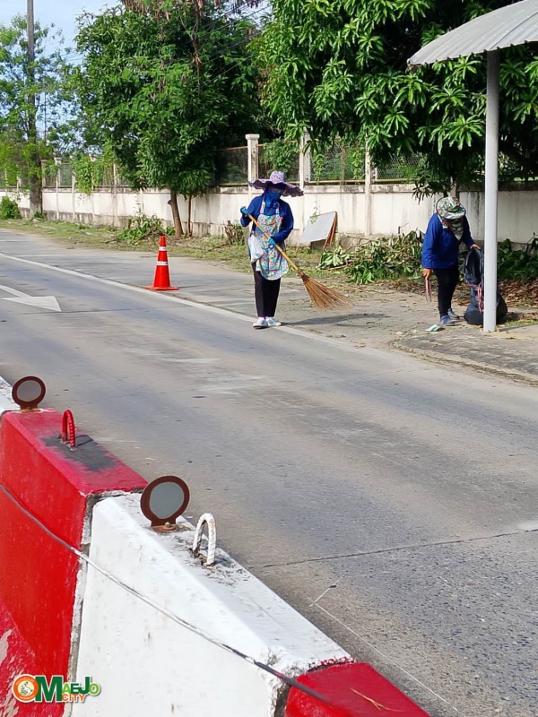 - กวาดถนน เก็บขยะ และตัดต้นชา
