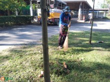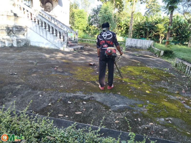 - กวาดถนน เก็บขยะ และตัดต้นชา