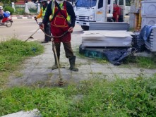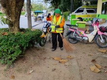 - กวาดถนน เก็บขยะ และตัดต้นชา