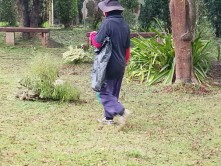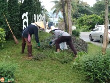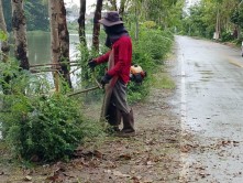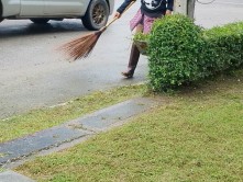 - กวาดถนน เก็บขยะ และตัดต้นชา