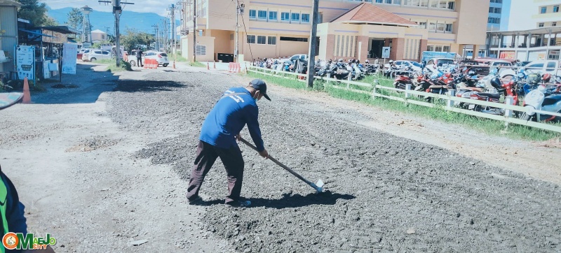 เพื่อความปลอดภัยของทุกคน - แม่โจ้ดำเนินการแก้หลุมบ่อและวางแผนสร้างถนนใหม่ข้าง รพ.สันทราย