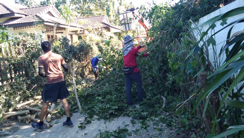 - ตัดและเก็บกิ่งไม้ตกค้างในชุมชน