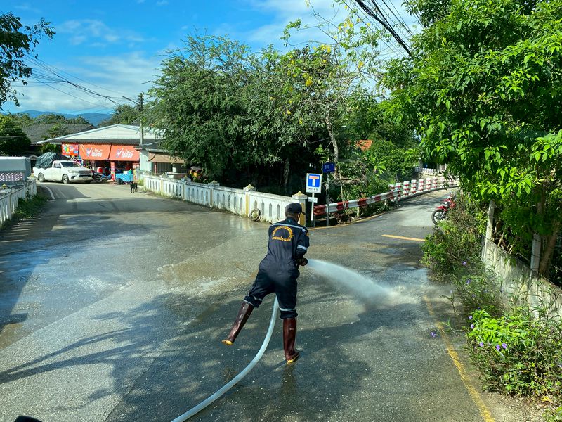 - ล้างถนนในพื้นที่ชุมชนป่าบง