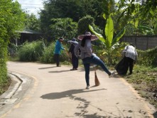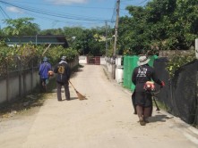 - กวาดถนน เก็บขยะ และตัดต้นชา