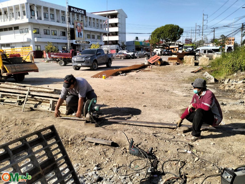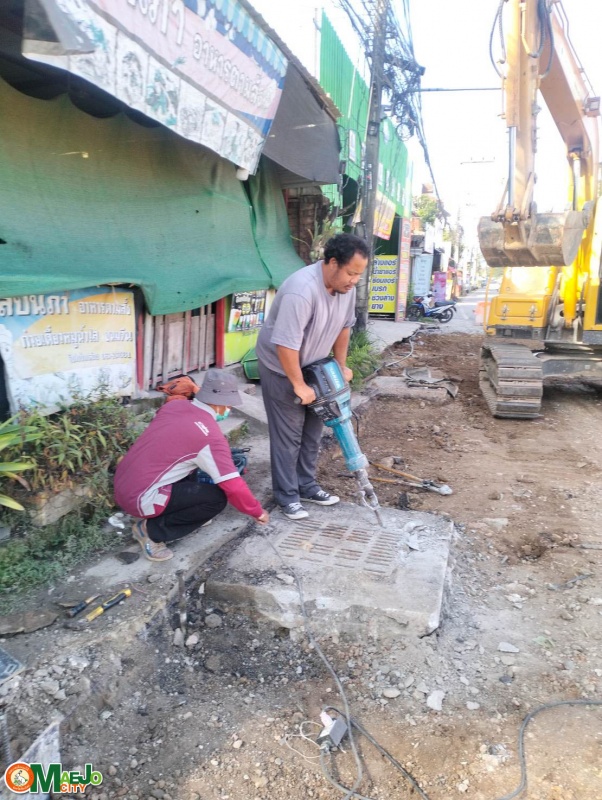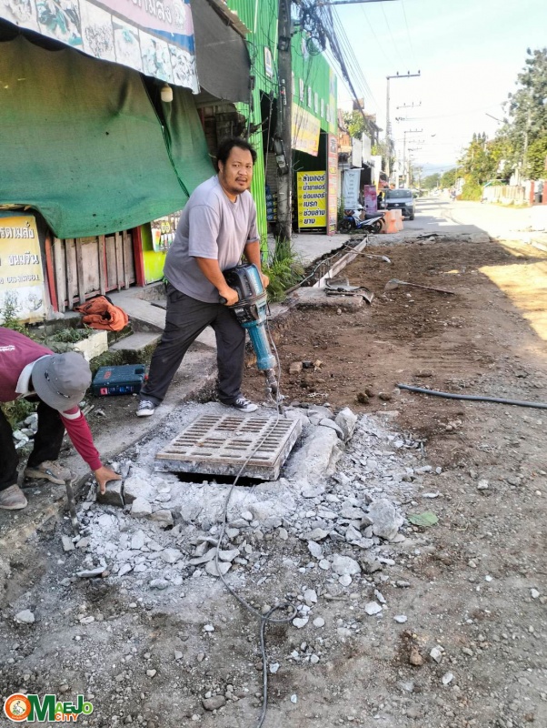 - ยกฝาบ่อรางระบายน้ำ บริเวณสี่แยกสถานีตำรวจภูธรแม่โจ้