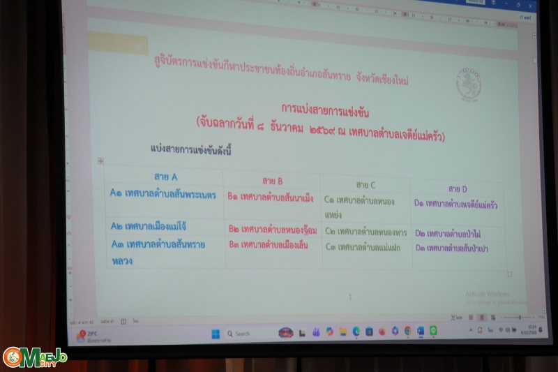 เทศบาลเมืองแม่โจ้ เข้าร่วมประชุมหารือจัดการแข่งขันกีฬาประชาชนท้องถิ่น อำเภอสันทราย ประจำปี 2569