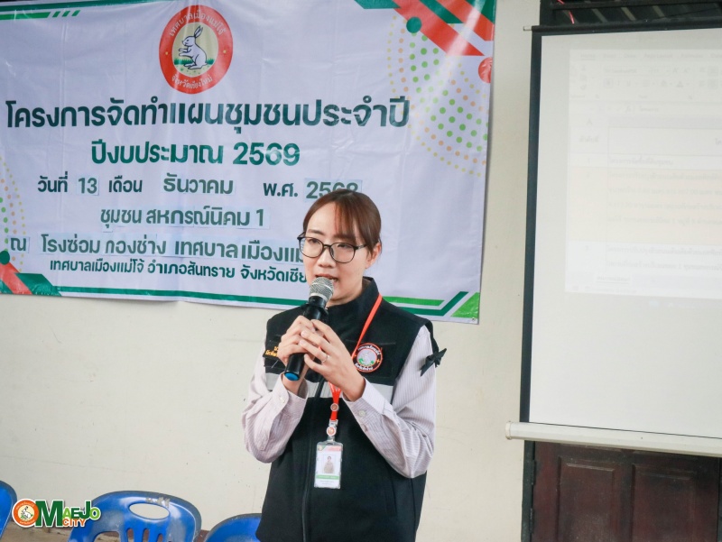 เทศบาลเมืองแม่โจ้ ลงพื้นที่บูรณาการสื่อสารชุมชน ทบทวนแผนชุมชน รวมพลังแก้ไขปัญหายาเสพติด และส่งเสริมการจัดตั้งกองทุนแม่ของแผ่นดิน ชุมชนสหกรณ์นิคม 1