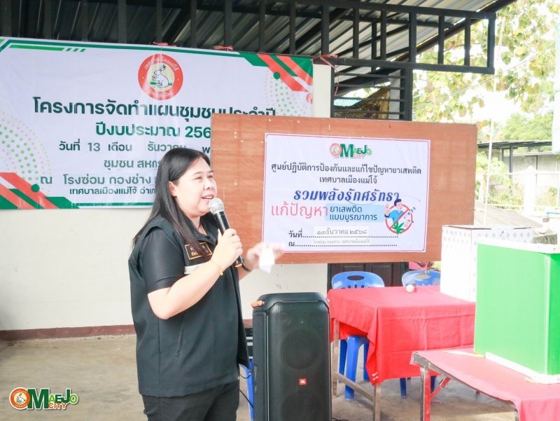 เทศบาลเมืองแม่โจ้ ลงพื้นที่บูรณาการสื่อสารชุมชน ทบทวนแผนชุมชน รวมพลังแก้ไขปัญหายาเสพติด และส่งเสริมการจัดตั้งกองทุนแม่ของแผ่นดิน