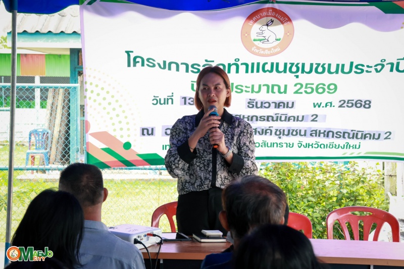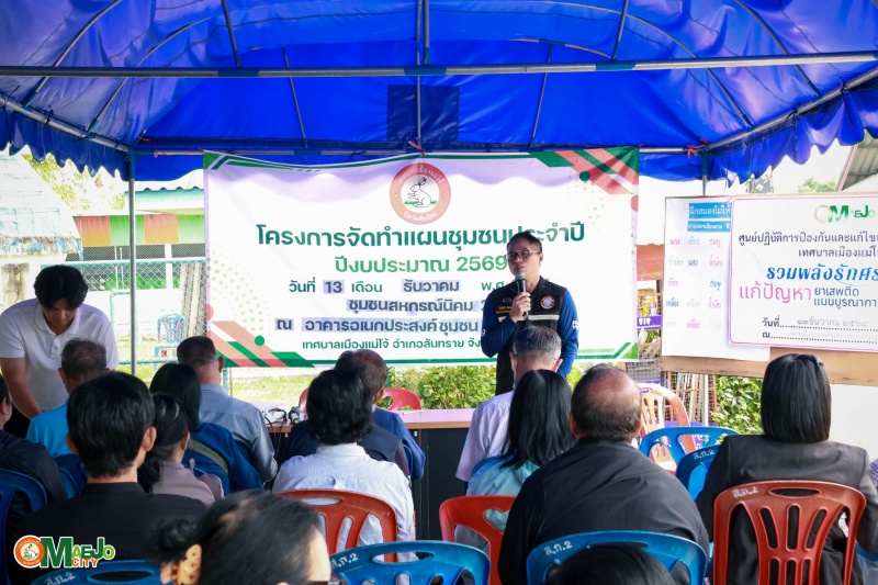 เทศบาลเมืองแม่โจ้ ลงพื้นที่บูรณาการสื่อสารชุมชน ทบทวนแผนชุมชน รวมพลังแก้ไขปัญหายาเสพติด และส่งเสริมการจัดตั้งกองทุนแม่ของแผ่นดิน ชุมชนสหกรณ์นิคม 2
