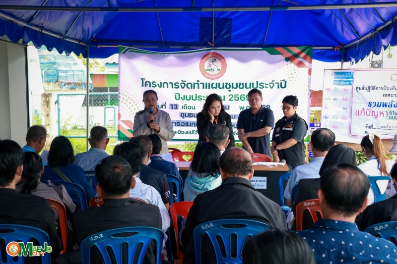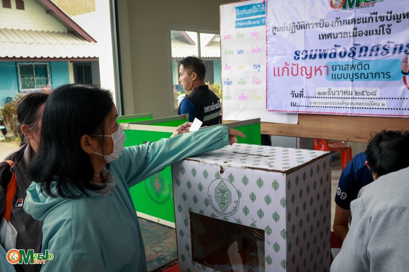 เทศบาลเมืองแม่โจ้ ดำเนินโครงการ บูรณาการสื่อสารชุมชน ทบทวนแผนชุมชน รวมพลังศรัทธาแก้ไขปัญหายาเสพติดแบบบูรณาการ พร้อมส่งเสริมการจัดตั้ง "กองทุนแม่ของแผ่นดิน" ระหว่างวันที่ 7, 13, 20 ธันวาคม 2568 และวันที่ 17, 24, 31 มกราคม 2569