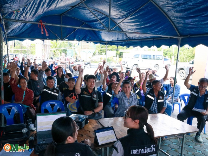 เทศบาลเมืองแม่โจ้ ลงพื้นที่บูรณาการสื่อสารชุมชน ทบทวนแผนชุมชน รวมพลังแก้ไขปัญหายาเสพติด และส่งเสริมการจัดตั้งกองทุนแม่ของแผ่นดิน