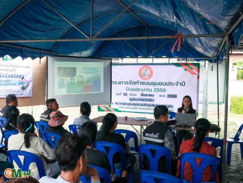 เทศบาลเมืองแม่โจ้ ดำเนินโครงการ บูรณาการสื่อสารชุมชน ทบทวนแผนชุมชน รวมพลังศรัทธาแก้ไขปัญหายาเสพติดแบบบูรณาการ พร้อมส่งเสริมการจัดตั้ง "กองทุนแม่ของแผ่นดิน" ระหว่างวันที่ 7, 13, 20 ธันวาคม 2568 และวันที่ 17, 24, 31 มกราคม 2569