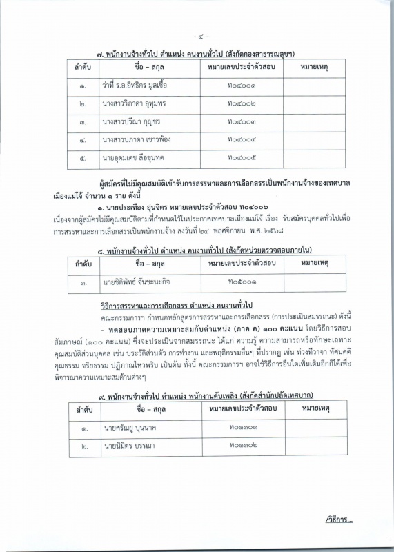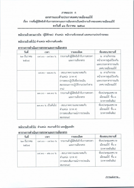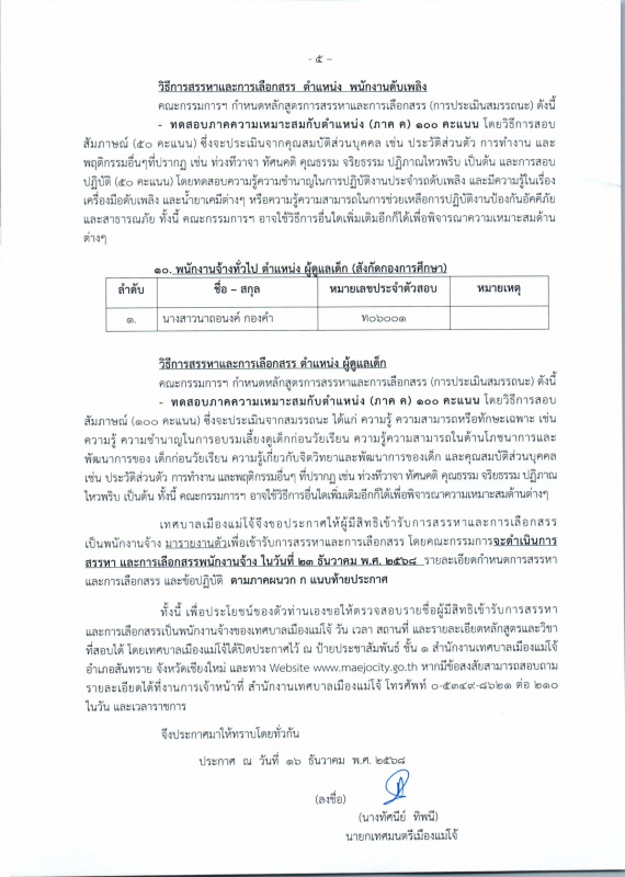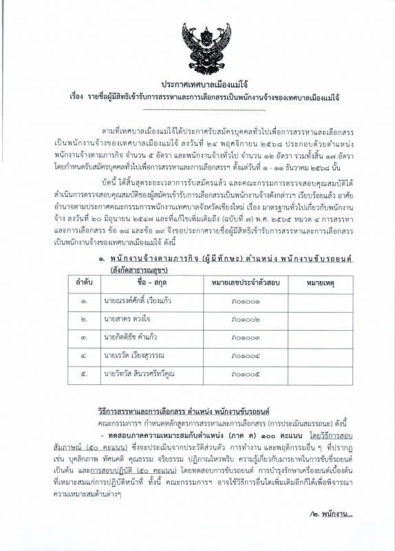 เทศบาลเมืองแม่โจ้ ขอประชาสัมพันธ์ ประกาศ รายชื่อผู้มีสิทธิเข้ารับการสรรหา และเลือกสรรเป็นพนักงานจ้างของเทศบาลเมืองแม่โจ้
