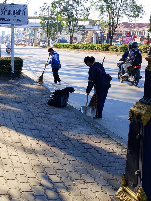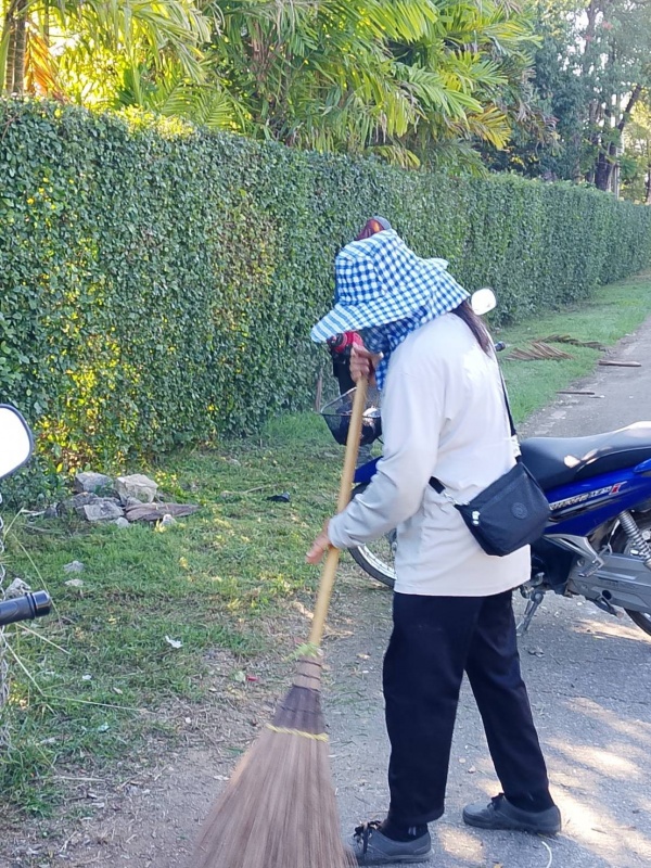 - กวาดถนน เก็บขยะ และตัดแต่งต้นชา