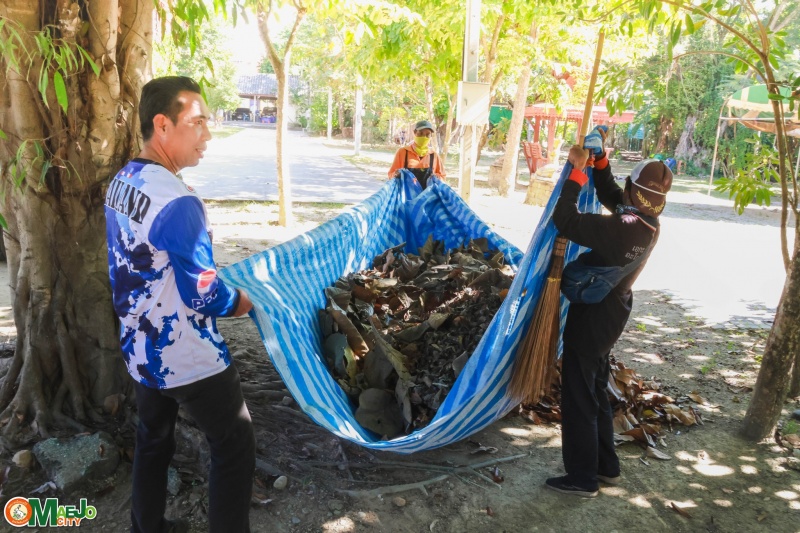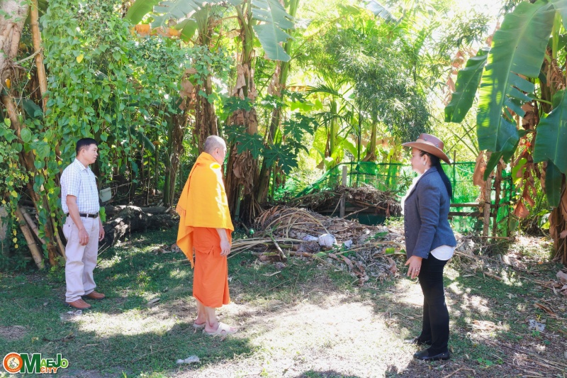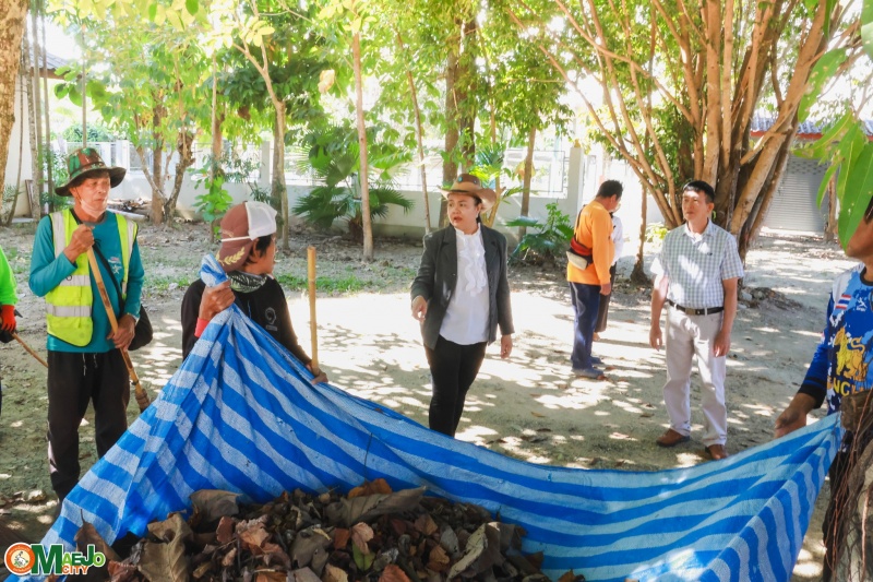 ในเวลาต่อมา นายกเทศมนตรีเมืองแม่โจ้และคณะ ได้ลงพื้นที่ให้กำลังใจพนักงานเจ้าหน้าที่ที่ปฏิบัติงานด้านการพัฒนาสิ่งแวดล้อม พร้อมทั้งร่วมพิจารณาหาสถานที่สำหรับจัดทำ ปุ๋ยหมักจากเศษใบไม้ เพื่อใช้ประโยชน์ในชุมชนไร่สหกรณ์และชุมชนใกล้เคียง ลดปริมาณขยะอินทรีย์ และส่งเสริมการจัดการสิ่งแวดล้อมอย่างยั่งยืน