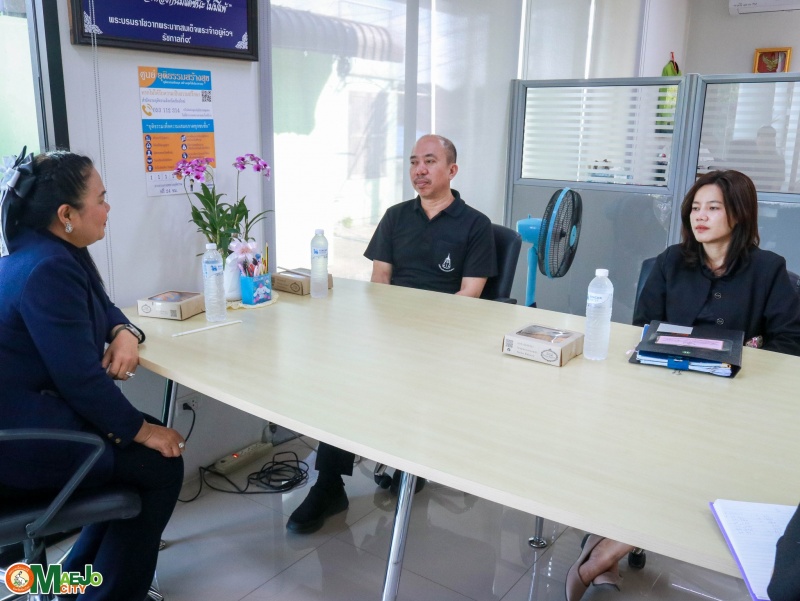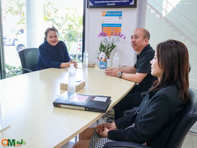 นางทัศนีย์ ทิพนี นายกเทศมนตรีเมืองแม่โจ้ พร้อมด้วย นายวิรัช จิโรจน์พงศา ปลัดเทศบาลเมืองแม่โจ้ และนางสาวสุดาพร จันต๊ะพิงค์ นิติกรชำนาญการ ให้การต้อนรับ นายขจรศักดิ์ ศิริอัครลาภ อัยการจังหวัดประจำสำนักงานอัยการสูงสุด สคช. จังหวัดเชียงใหม่ ในโอกาสเดินทางมาตรวจเยี่ยมการดำเนินงานของศูนย์ช่วยเหลือประชาชน เทศบาลเมืองแม่โจ้