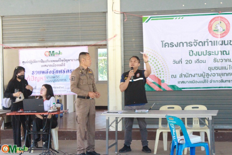 เทศบาลเมืองแม่โจ้ ลงพื้นที่บูรณาการสื่อสารชุมชน ทบทวนแผนชุมชน รวมพลังแก้ไขปัญหายาเสพติด และส่งเสริมการจัดตั้งกองทุนแม่ของแผ่นดิน