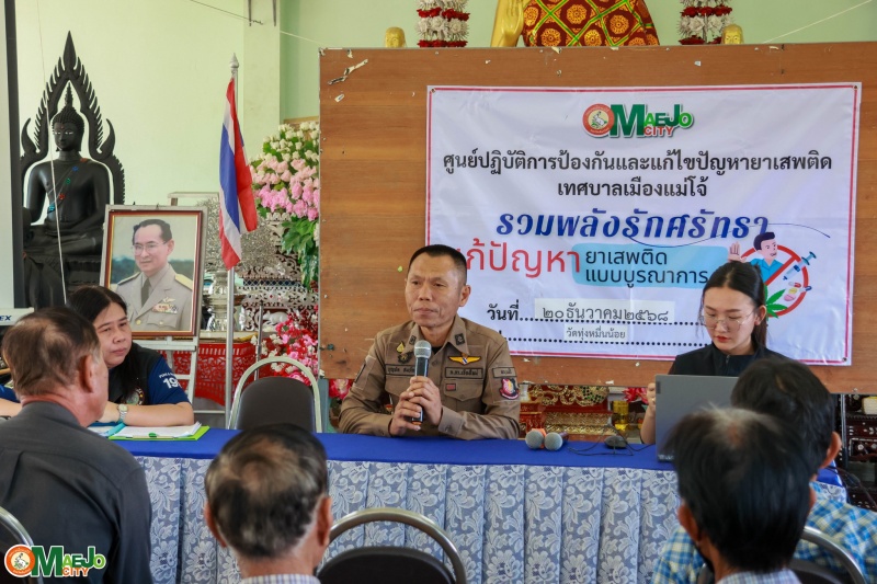 เทศบาลเมืองแม่โจ้ ดำเนินโครงการ บูรณาการสื่อสารชุมชน ทบทวนแผนชุมชน รวมพลังศรัทธาแก้ไขปัญหายาเสพติดแบบบูรณาการ พร้อมทั้งส่งเสริมการจัดตั้ง "กองทุนแม่ของแผ่นดิน" ระหว่างวันที่ 7, 13, 20 ธันวาคม 2568 และ 17, 24, 31 มกราคม 2569