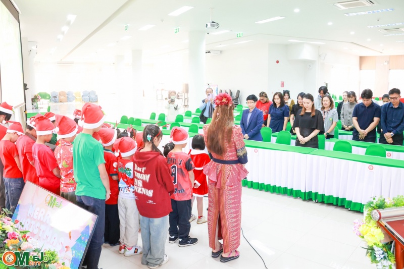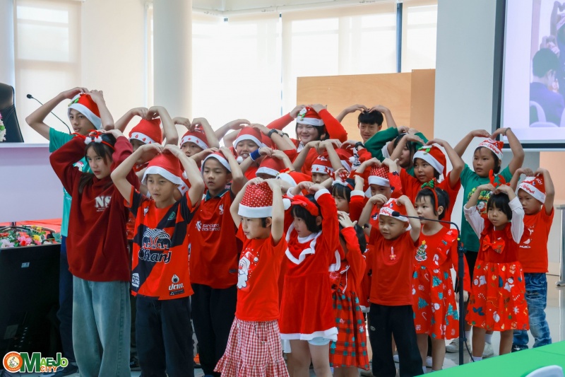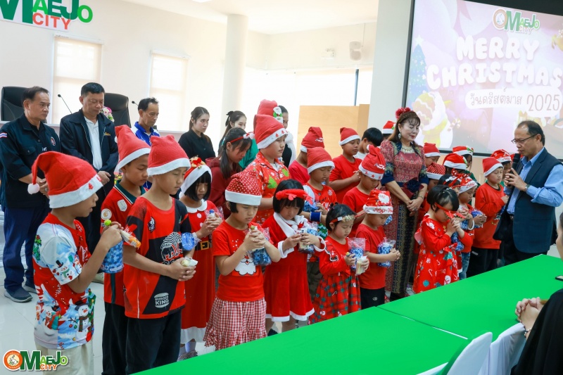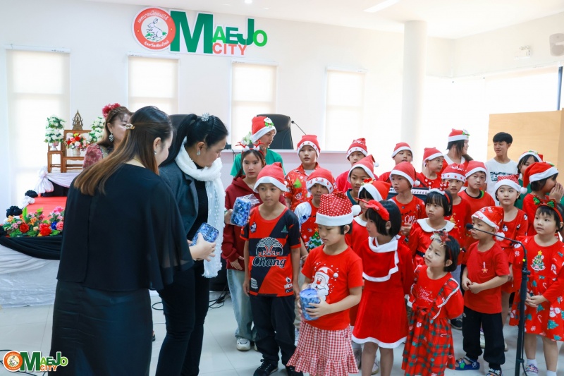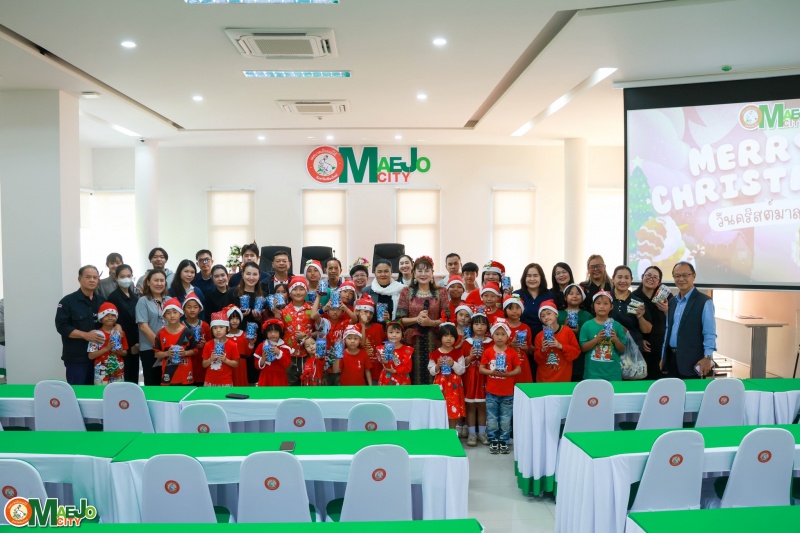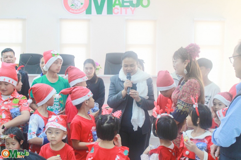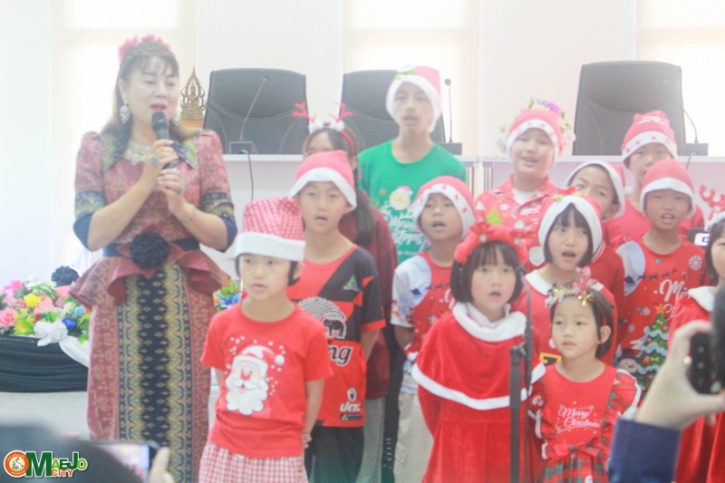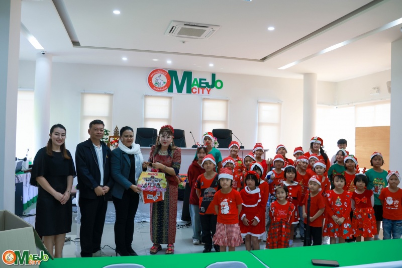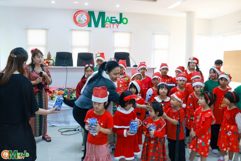 เทศบาลเมืองแม่โจ้ ร่วมต้อนรับคณะจากมูลนิธิแสงไทยดรุณ ร่วมร้องเพลงอวยพรเนื่องในวันคริสต์มาส