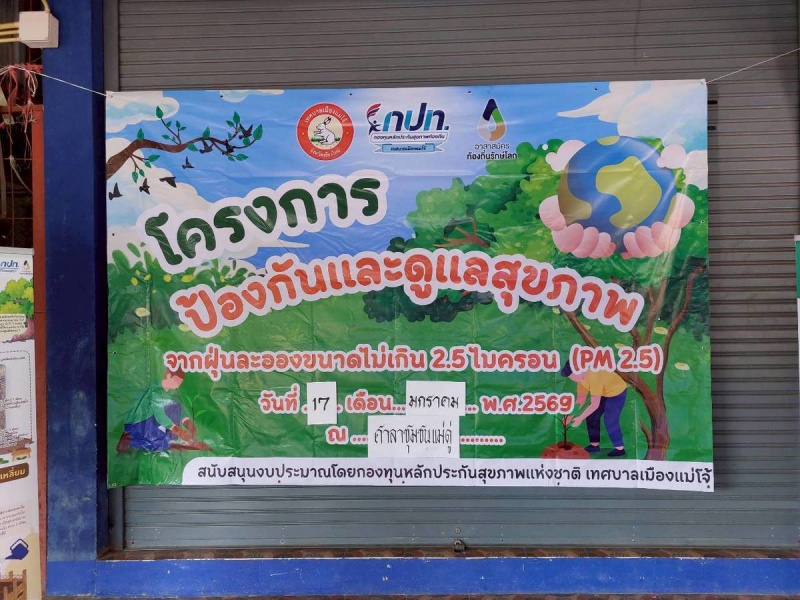 กลุ่มอาสาสมัครท้องถิ่นรักษ์โลก เทศบาลเมืองแม่โจ้ จัด โครงการป้องกันและดูแลสุขภาพจากฝุ่นละอองขนาดไม่เกิน 2.5 ไมครอน (PM 2.5) เพื่อให้พี่น้องประชาชนในพื้นที่มีความรู้ ความเข้าใจถึงผลกระทบของฝุ่น PM 2.5 ที่ส่งผลต่อสุขภาพ รวมถึงแนวทางการป้องกันตนเองและการดูแลสุขภาพอย่างถูกต้องในช่วงสถานการณ์ฝุ่นละออง