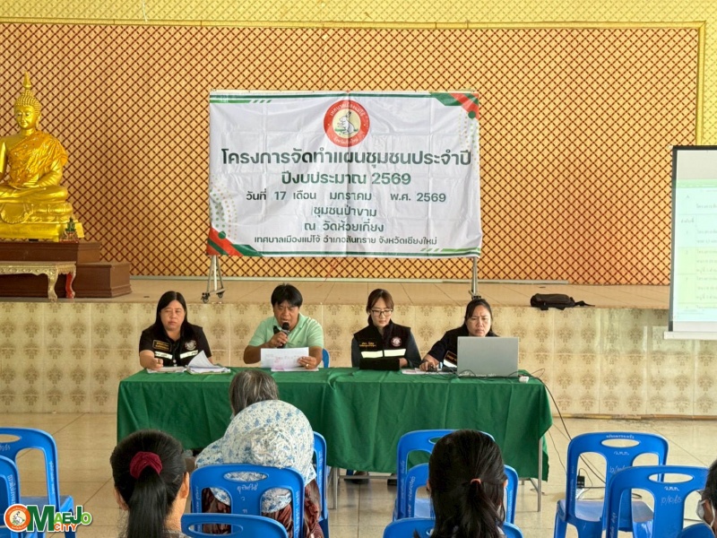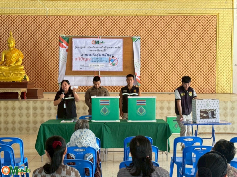 เทศบาลเมืองแม่โจ้ ดำเนินโครงการ บูรณาการสื่อสารชุมชน ทบทวนแผนชุมชน รวมพลังศรัทธาแก้ไขปัญหายาเสพติดแบบบูรณาการ พร้อมทั้งส่งเสริมการจัดตั้ง "กองทุนแม่ของแผ่นดิน" ระหว่างวันที่ 7, 13, 20 ธันวาคม 2568 และ 17, 24, 31 มกราคม 2569