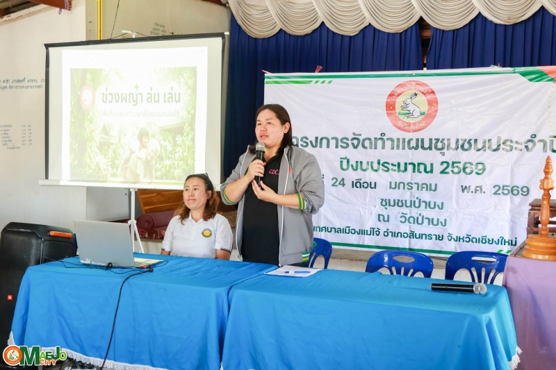 เทศบาลเมืองแม่โจ้ ลงพื้นที่บูรณาการสื่อสารชุมชน ทบทวนแผนชุมชน รวมพลังแก้ไขปัญหายาเสพติด และส่งเสริมการจัดตั้งกองทุนแม่ของแผ่นดิน ชุมชนป่าบง