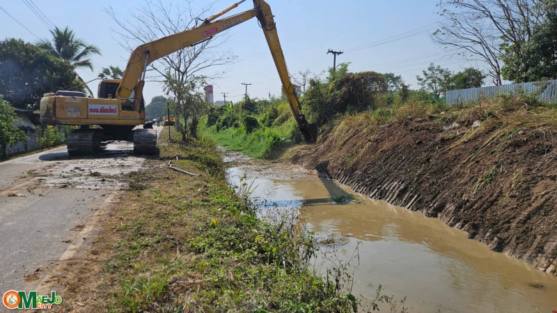 เทศบาลเมืองแม่โจ้ ขอขอบคุณองค์การบริหารส่วนจังหวัดเชียงใหม่ สนับสนุนรถแม็คโครบูมยาว แก้ไขปัญหาทางน้ำ