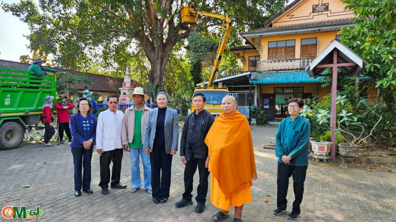 วันที่ 3 กุมภาพันธ์ 2569 วัดป่าบง ตำบลหนองหาร อำเภอสันทราย จังหวัดเชียงใหม่ ได้ขอความอนุเคราะห์ให้ เทศบาลเมืองแม่โจ้ เป็นผู้ประสานงานกับ องค์การบริหารส่วนจังหวัดเชียงใหม่ เพื่อขอรับการสนับสนุนรถกระเช้าสูง เข้าดำเนินการตัดกิ่งต้นโพธิ์ขนาดใหญ่ภายในบริเวณวัด