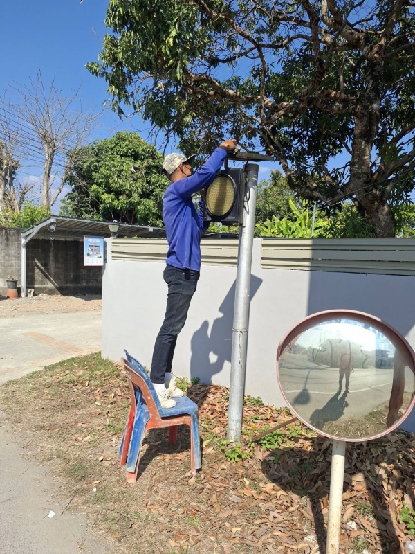 ทำความสะอาด ตรวจเช็ค และซ่อมไฟสัญญาณเตือนทางแยก ในเขตเทศบาลเมืองแม่โจ้