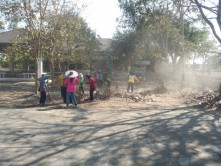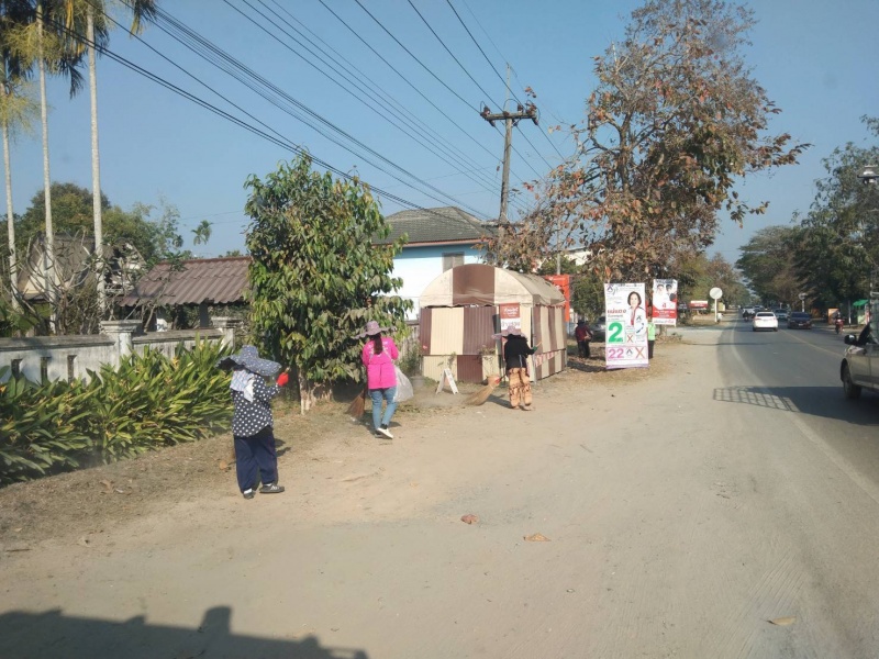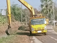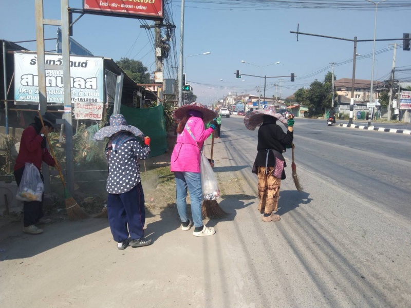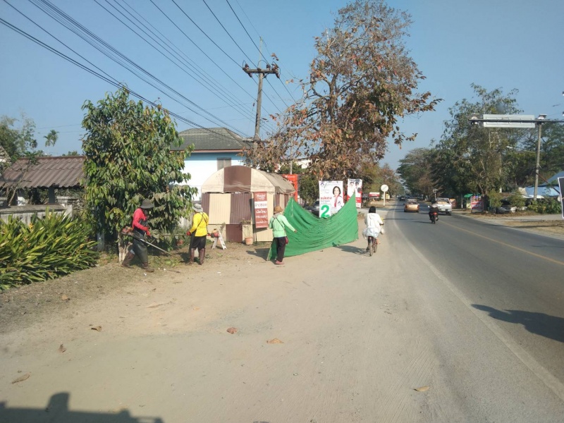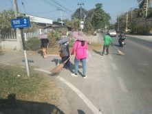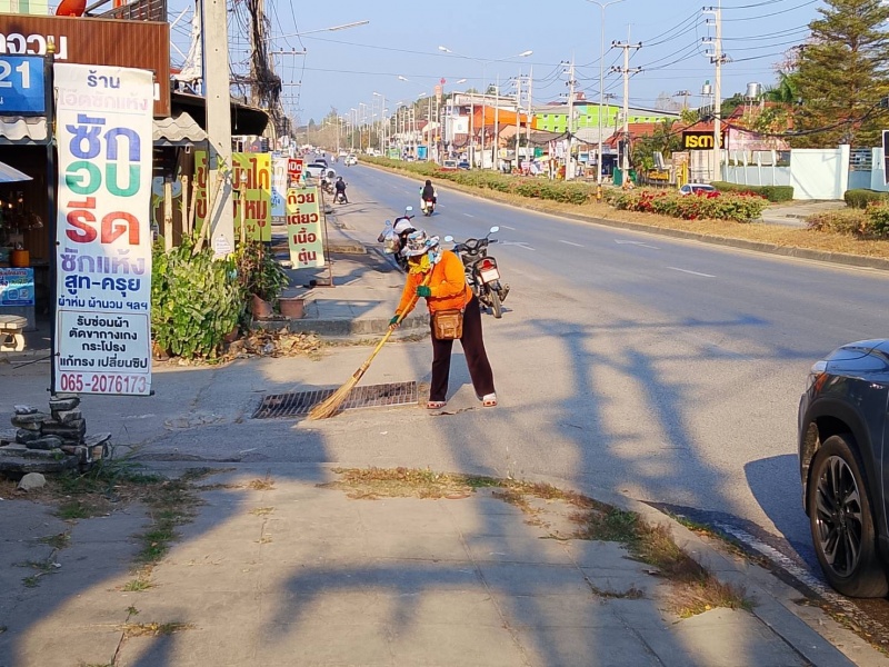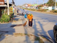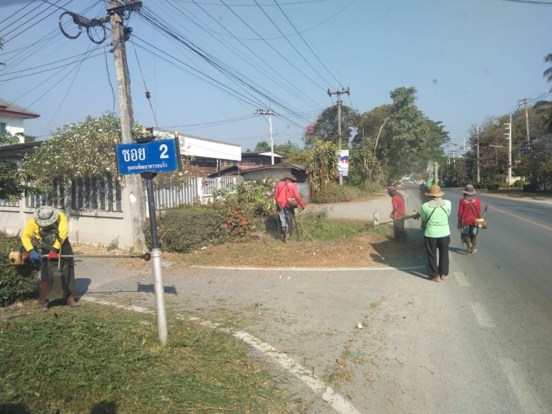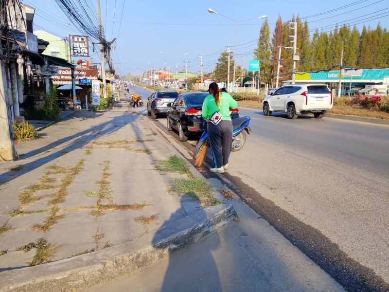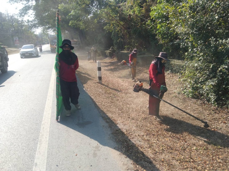พัฒนาตัดหญ้าและเก็บขยะสองข้างทาง บนถนนสายหลัก