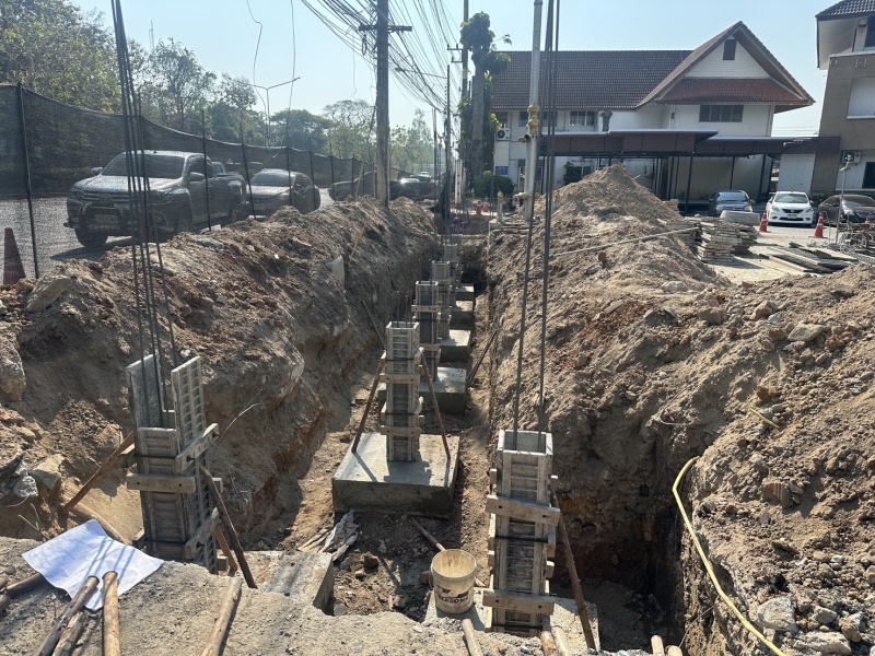 ประกอบแบบต่อท่อและเทคอนกรีต โครงการก่อสร้างป้ายเทศบาลเมืองแม่โจ้
