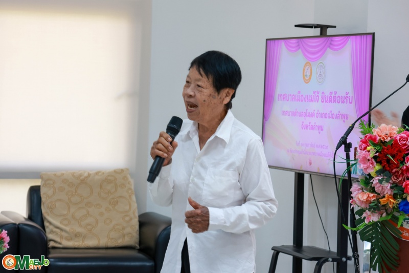 พร้อมด้วยคณะกรรมการและกลุ่มผู้สูงอายุเทศบาลเมืองแม่โจ้ ร่วมให้การต้อนรับและแลกเปลี่ยนเรียนรู้ประสบการณ์ด้านการบริหารจัดการกลุ่มผู้สูงอายุและการดำเนินกิจกรรมเพื่อพัฒนาคุณภาพชีวิตผู้สูงอายุในชุมชน