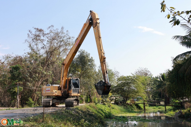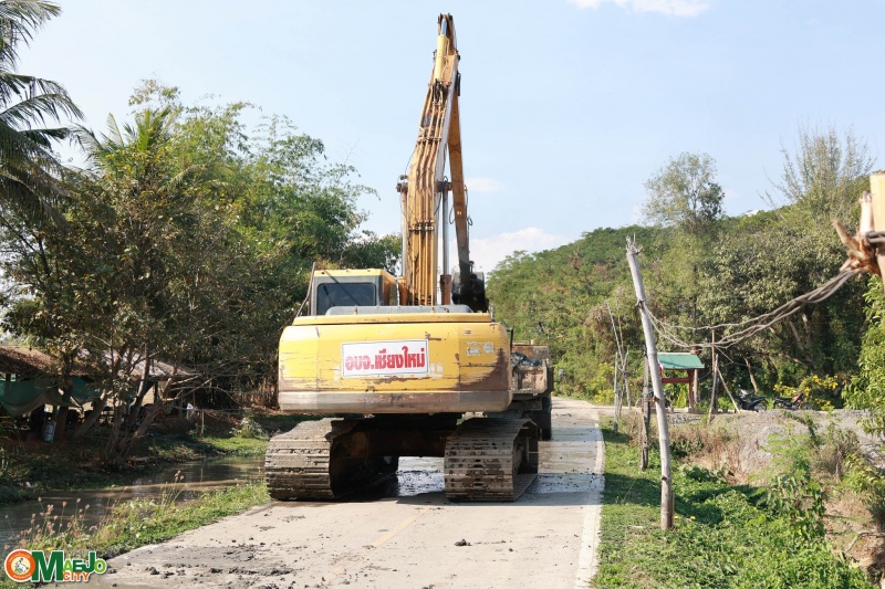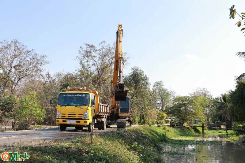 ดำเนินการต่อเนื่อง เทศบาลเมืองแม่โจ้ ติดตามการขุดลอกลำน้ำคาว แก้ปัญหาสิ่งกีดขวางทางน้ำ